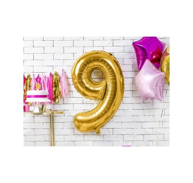 Folieballong. Nummer ""9"", gyllene. Storlek 34""/86 cmOuppblåst ballong.Läs mer om produkten