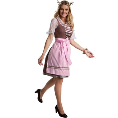 Med den attraktiva mini dirndl Altötting är du perfekt stylad för rejäla fester. Klänningen med prickmönster har ett passande snitt. Mellan snörningen med strass och halsen med volanger och dekorativ bård fångar ett vackert blommigt broderi blickarna. Den korta kjolen avslutas med ett rutigt mönster, som även finns på det färgkoordinerade förklädet, material: 100% bomull.