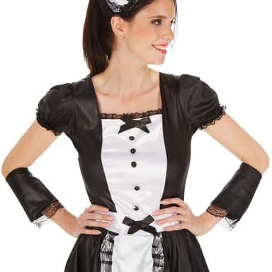 Den supersexiga maskeraddräkt består av en förtjusande, förförisk klänning i svart och vitt. Klänningen är kort och trollar fram ett fantastiskt dekolletage. Till maskeraddräkten medföljer ett vackert diadem, sexiga strumpor och handledsvärmare, material: 100 % polyester.
