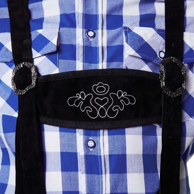 Dessa knälånga Lederhosen Fichtelgebirge är i markant svart De mångsidiga justeringsalternativen på grund av läderbanden och de avtagbara hängslena ger en hög bärkomfort. Blombroderier i vitt pryder den mörka bakgrunden och understryker det enkla men samtidigt eleganta utseendet på detta traditionella plagg perfekt, Material: 100 % polyester.