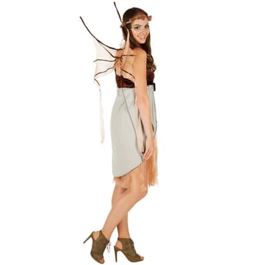 Maskeraddräkten Naturväsen för damer består av en kort och vacker klänning. Till detta medföljer vingar med resår och ett förtrollande hårband, material: 100 % polyester.