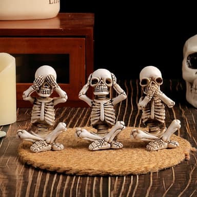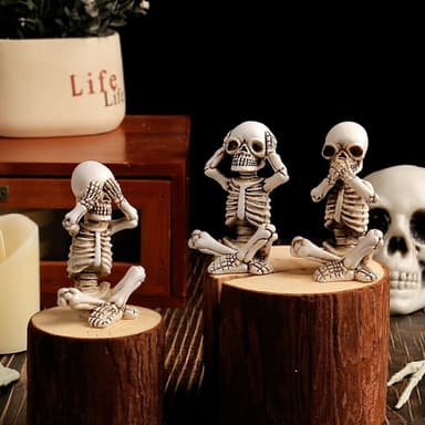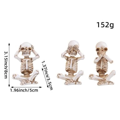 3 ST Halloween Mini Dödskalle Staty Skrivbordsdekoration Hartsdekor Sittande skelettfigurer