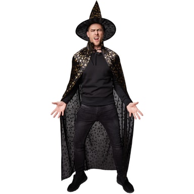 Med hatt och cape till halloween är du utklädd på nolltid och redo för maskeraden eller halloween. Kombinera enkelt med svarta, vanliga kläder. Eller snygga till din häx- eller skräckdräkt med hatten och capen. Det finns inga gränser för din fantasi och din kreativitet. Eller gå tillsammans med vännerna eller familjen som trollkarlsgrupp.