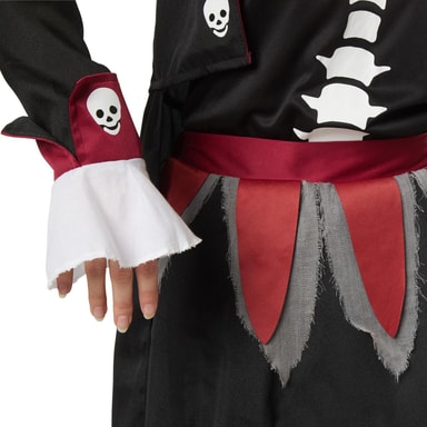 Kusliga Skull Lady firar mexikanska “De dödas dag” i förnäm och fin stil. De odöda har bokstavligt talat snofsat till sig: Benen under och över kjolen i flera lager glittrar och glänser och kavajen som är elegant delad baktill pryds av dödskallar. I denna vackra tidlösa stil ser Kuslig Skull Lady allt annat än föråldrad ut.