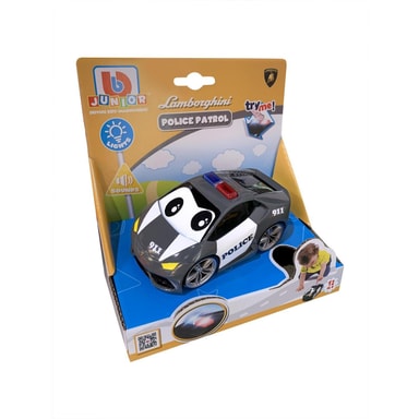 “Upp med händerna, du är anhållen!” Den här Lamborghini-polisbilen kommer snabbt till att hjälpa till när bovarna ska fångas. Och så är det jättebra att bilen är så snabb. Dra tillbaka bilen och se den susa iväg över golvet. Den har också ljud- oc...Läs mer om produkten