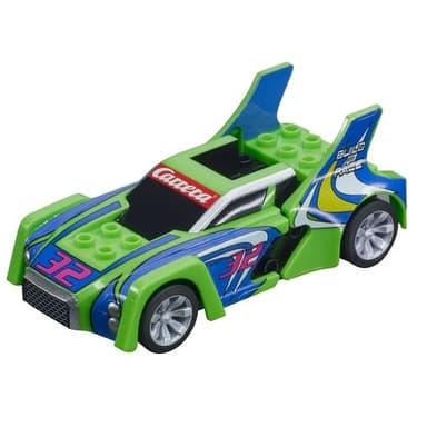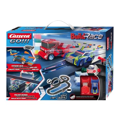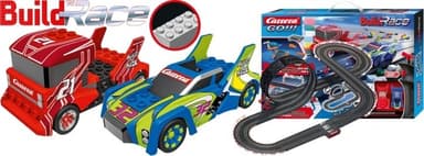 Analog bilbana i skala 1:43 med bilar bestående av byggstenar. Banan kan byggas med tre olika konfigurationer.Läs mer om produkten