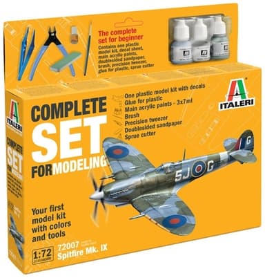 Byggesett av Spitfire Mk IX Startsett i 1:72 skala. Du får alt du trenger i esken og du kan med engang starte å bygge din helt egen Spitfire.Läs mer om produkten