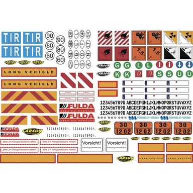 • Snygga dekaler passar till många TAMIYA-dragbilar och påhängsvagnar samt andra modellastbilar i skala 1:14/1:16