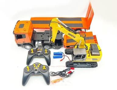 Huina här med ett entreprenadmaskinpaket bestående av en 9-kanalig plattformsvagn som är över 80cm lång med rampen nedfälld och en 6-kanalig grävmaskin i skala 1:24.Läs mer om produkten