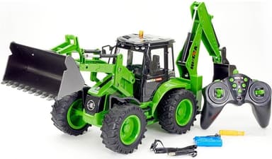 Huina här med en traktor som rör sig framåt, bakåt, höger, vänster, upp och ner med skoparna fram och bak. Den är även utrustad med stödben, ljus och ljud. Lika roligt för vuxna och barn.Läs mer om produkten