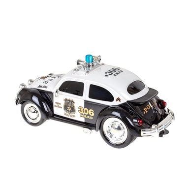 Vintage Police Patrol RC bil är utrustad med både ljudeffekter och ljuseffekter, vilket gör att du kan skapa en riktig polisbil-stämning när du kör den. Du kan enkelt slå på och av ljud- och ljuseffekterna med hjälp av fjärrkontrollen.Med 2st AA-batterier för fjärrkontrollen, är bilen enkel att använda och perfekt för barn och vuxna som vill ha en rolig och spännande leksak.