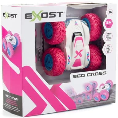 Tålig radiostyrd bil som låter dig köra över olika typer av hinder och terränger. Exost 360 Cross är en häftig stuntbil som kan köra både på ovan- och undersidan samt göra coola 360-spinns. Bilen är utrustad med rejäla terrängdäck som är härdiga och stötdämpande. Fjärrkontrollen har en RC-antenn med upp till 15 meters räckvidd. Ge dig ut på äventyr med rc-bilen Exost Cross och ta dig över alla hinder med en toppfart på 12 km/h.