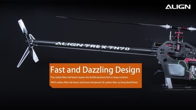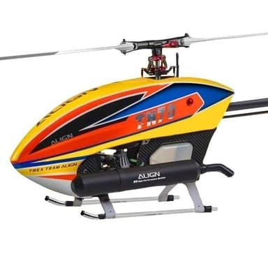 Align TN70 levereras här som ett kit. Själva helikoptern levereras som byggsats och den levereras med bränsletank, 105 High Performance-rör, blad och regulatorsensor.Läs mer om produkten