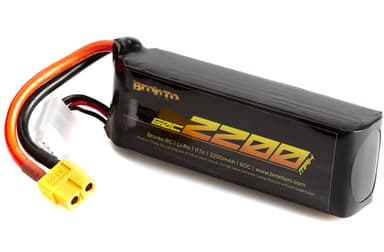 Bronto LiPo-paket på 2200mAh med full 60C urladdningsalternativ. Levereras med XH balanseringskontakt och 12AWG silikonkablar till huvudkontakt.Läs mer om produkten
