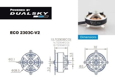 Dualsky ECO 2303C V2 1470KV 19 gram inomhus