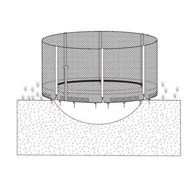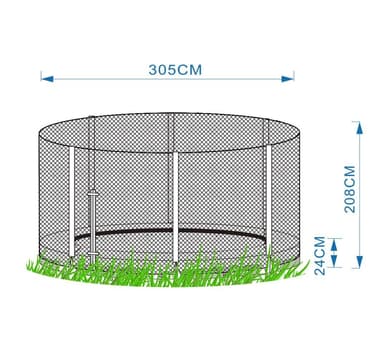 Kapsling för 305cm markstudsmatta, med stolpar, svart. Kapslingen är gjord av svart polyesternät. Entréöppningen kan stängas med dragkedja. Setet innehåller sex stödstolpar med skumstoppning. Stavarna är gjorda av galvaniserat stålrör D25,4x1,1mm. Den totala höjden på kapslingen är 208cm, höjden från studsmattans kant är 184cm. Kapslingen passar till HOME 4 YOU 305cm studsmatta med kod 19416. FÖRVARING: vid slutet av sommarsäsongen, ta bort skyddsnätet från studsmattan och förvara det i ett torrt, välventilerat rum. Rengör och torka nätet innan förvaring.