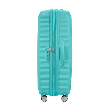 ""Den här stora resväskan från vår svängiga Soundbox-kollektion har en packvolym på över 100 liter och väger endast 4,2 kg. Dessutom är den säker och slitstark. Det lekfulla, cirkelformade mönstret med kontrasterande matta och glansiga ytor väcker garanterat uppmärksamhet vart du än reser. Med sin expanderingsfunktion, sitt fasta TSA-lås, de 4 lättrullade dubbelhjulen och de praktiska invändiga förvaringslösningarna är den här väskan ett alldeles ypperligt val!