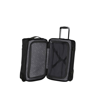 Urban Track Duffelväska Liten med hjul är kabingodkänd, är lättpackad, har ett fast TSA-kombilås och komfortabla och lättåtkomliga handtag.Fast TSA-låsTvå framfickorHandtag på toppen och framsidanPerfekt för en 2 dagars resaTillverkad av rPet polyestLäs mer om produkten