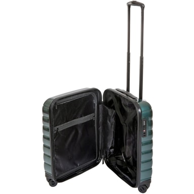 Självklart helfodrad inredning med packband och avdelare, som underlättar för dig när du packar. Fast TSA-lås. Fyra tystgående hjul. Helt integrerat teleskophandtag.