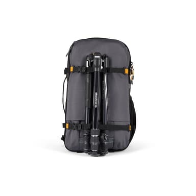 Bär ditt stativ på två olika sätt: vertikalt på framsidan av ryggsäcken, med de avtagbara remmarna, eller genom att använda stretchfickan på sidan. All Weather AW Cover™ skyddar utrustning från regn, snö och damm.