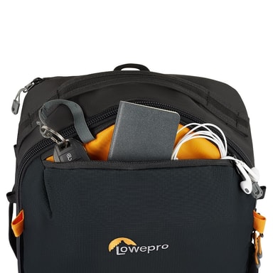 Bär ditt stativ på två olika sätt: vertikalt på framsidan av ryggsäcken, med de avtagbara remmarna, eller genom att använda stretchfickan på sidan. All Weather AW Cover™ skyddar utrustning från regn, snö och damm.