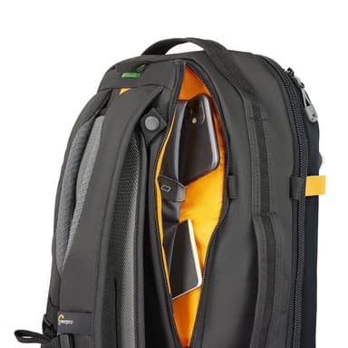 BP 250 AW har en löstagbar GearUp-kamerainsats med remsats, med 3 stora grepphandtag på toppen, sidan och framsidan. På baksidan finns ett gömt remsystem och en separerad laptopficka för snabb säkerhetskontroll, vilket gör den till en fantastisk resesällskap!