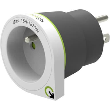• Reseadapter, kontakt: jordad kontakt (Frankrike), koppling: USA, Voltage: 100 - 250V, Ampere: 10A, färg: vit, grön, grå