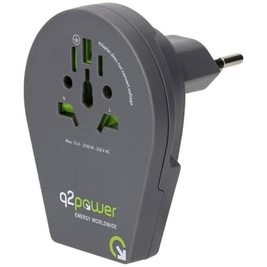 Q2 Power q2-1-1.00200-TH ReseadapterKONTAKTTYP CH, IT, BRAVÄGGUTTAGSTYP: AV, I, UK, CH, USA, Europa typ26Spänning 250 V, ström 10 A.Läs mer om produkten