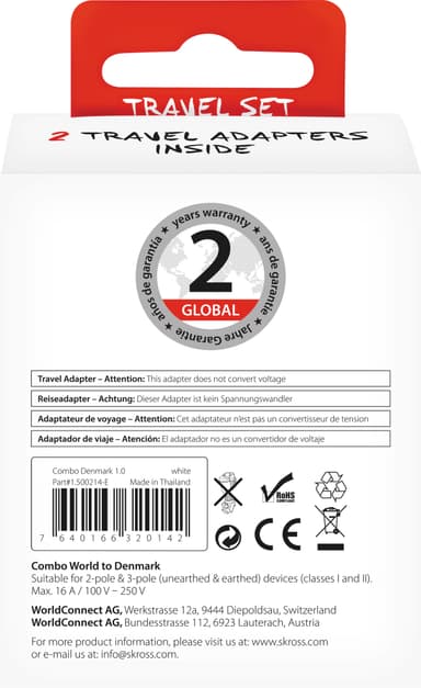Combo World till Danmark2i1-lösning: Danmark och Europa kombinerat i en enda adapterLäs mer om produkten