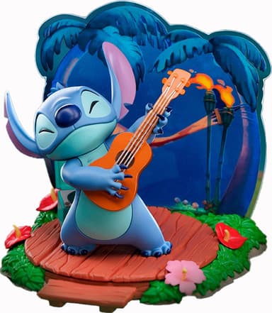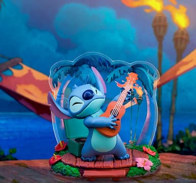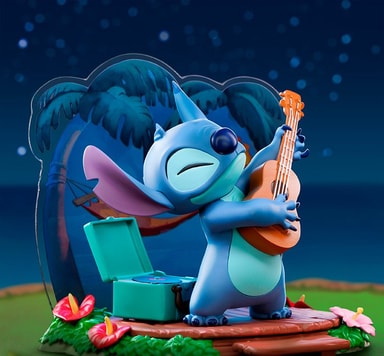 Funko Disney Lilo & Stitch actionfigur på 15 cm visar en bedårande Stitch som spelar Ukelele när han står på en träplattform.Läs mer om produkten