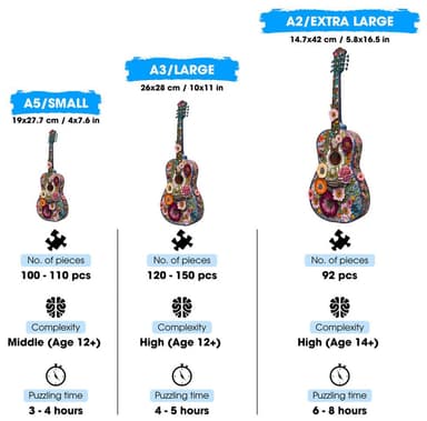 Crafthub Guitar pussel ger dig timmar av avkoppling och nöje. Trämaterialet är robust, och den speciella UV-trycktekniken gör bilden klar.Läs mer om produkten