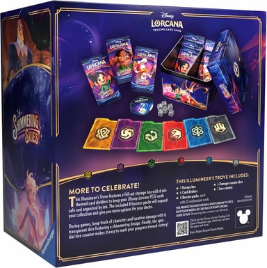 Förvara dina kort säkert och lättillgängligt med Disney Lorcana samlarkortspel. Det innehåller en vackert designad förvaringsbox, sex tematiska avdelare och åtta booster-paket för att utöka din samling och förbättra dina kortlekar.Läs mer om produkten