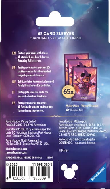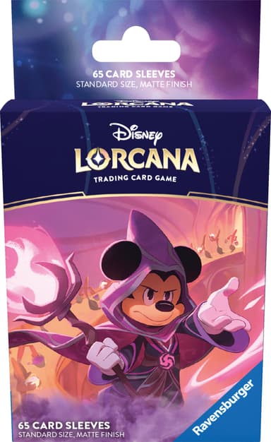 Ge dina Disney Lorcana-kort en magisk uppgradering med Disney Lorcana Reign of Jafar-kortfodral. Detta set innehåller 65 fodral med matt finish som visar upp konst av Mickey Mouse Wayward Sorcerer och en förtrollad Tinker Bell, Giant Fairy.Läs mer om produkten