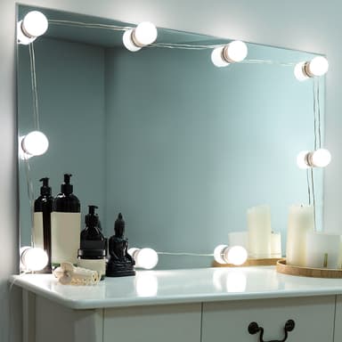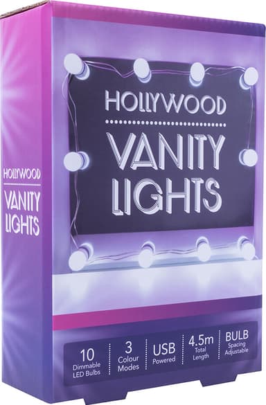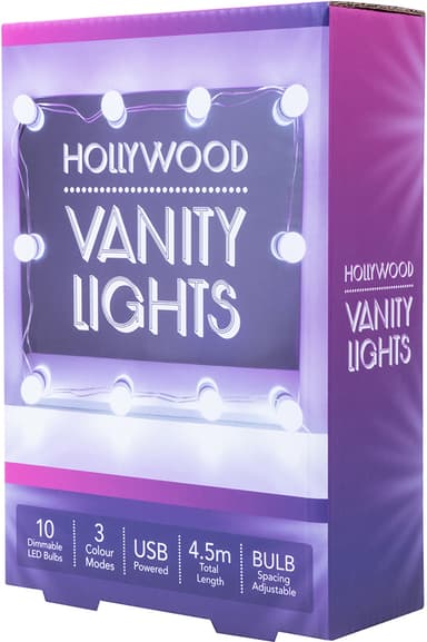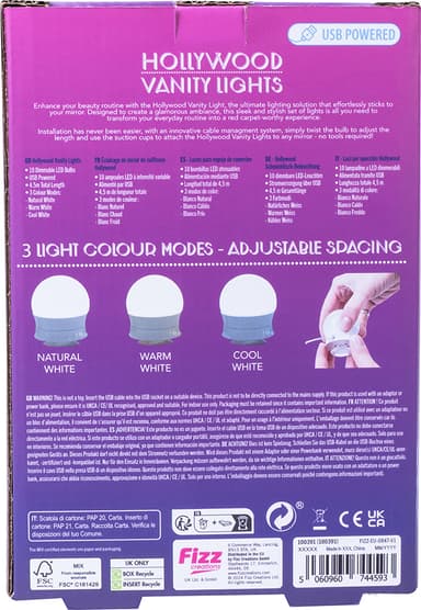 Skapa en glamorös rumsmiljö med Fizz Creations Hollywood-sminklampor. 10 dimbara USB-LED-lampor i tre ljuslägen för optimal belysning. Enkelt fäste på speglar och glasytor med sugproppar.Läs mer om produkten