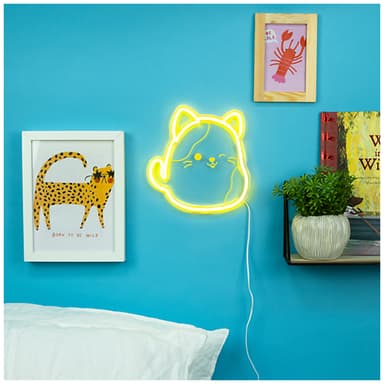 Denna neonvägglampa från Fizz Creations lyser upp ditt sovrum, vardagsrum eller arbetsplats med ett livfullt gult sken och föreställer Cam the Cat från Squishmallows-kollektionen. Tack vare de förborrade hålen går installationen som en dans.Läs mer om produkten