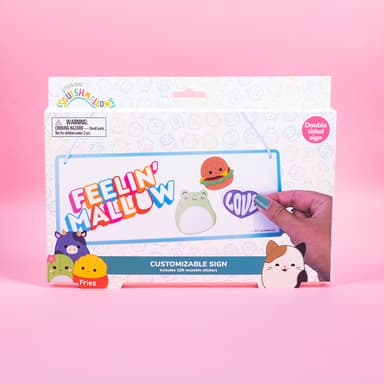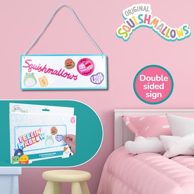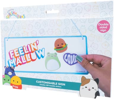 Låt dina små uttrycka sig med Fizz Creations Squishmallows rumskylt. Denna väggdekoration kommer med 128 återanvändbara klistermärken som gör att barnen kan sätta upp sina favoriter om och om igen. Du kan anpassa den med namn, fraser och mycket mer.Läs mer om produkten