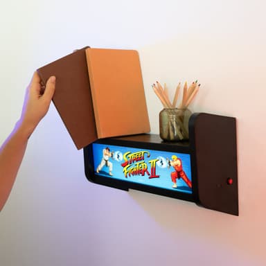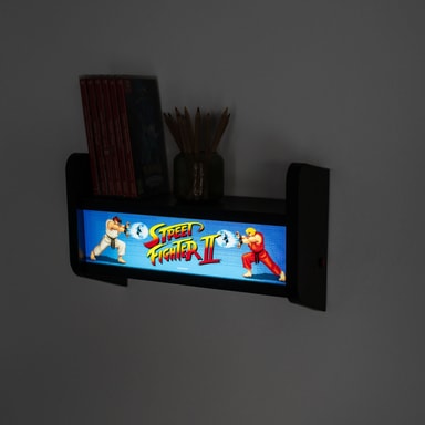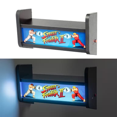 Grupo Erik Street Fighter Arcade USB-lampa för det ikoniska fightingspelets energi in i ditt hem. Den har enkelljusläge, kan väggmonteras och fungerar som en hylla. Den drivs av ett internt batteri, uppladdningsbart via USB-C-kabel.Läs mer om produkten