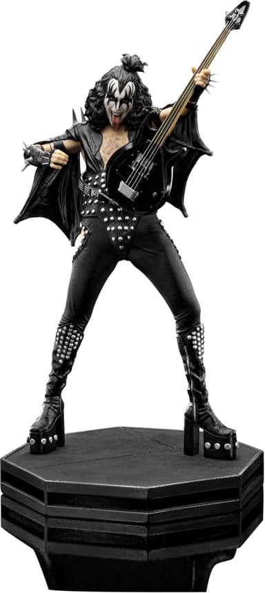 Få Iron Studios Gene Simmons actionfigur i displaybox för det perfekta tillskottet till din nördsamling. Avbildad i sin ikoniska svart-silver rustningskostym med fladdermusvingar och nitar.Läs mer om produkten