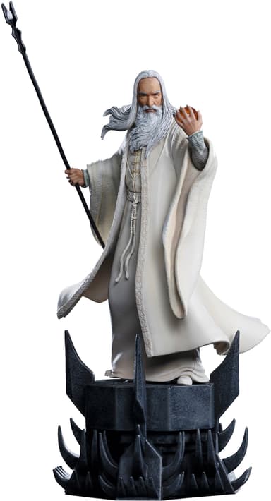 Lägg till essensen av Midgård i ditt hem med actionfiguren Iron Studios Lord Of The Rings. Denna 29 cm långa figur visar den vita trollkarlen Saruman som står på en bas som liknar Orthanc och håller sin stav med höger hand och Palantír i vänster.Läs mer om produkten