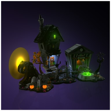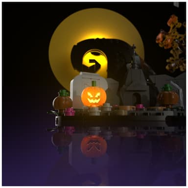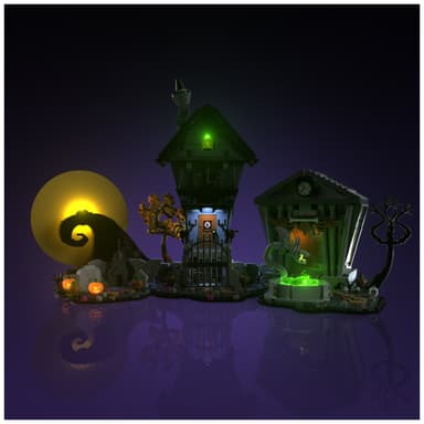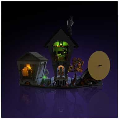 Light My Bricks™ belysningsset för Nightmare Before Christmas lyser upp ditt LEGO® #21351-set med 11 LED-lampor som framhäver Spiral Hill och Jacks hus, med lättinstallerade kablar för en strålande display från Halloween till jul.Läs mer om produkten