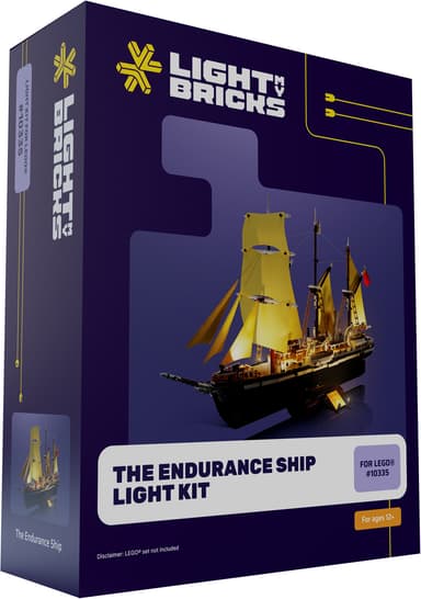 Light My Bricks™ belysningsset för The Endurance förhöjer ditt LEGO®-skepp med tunna bandkablar, varmvita Astro-lampor för plaketten, blinkande livbåtsbelysning och ett lysande takfönster som skapar en dynamisk visuell upplevelse.Läs mer om produkten