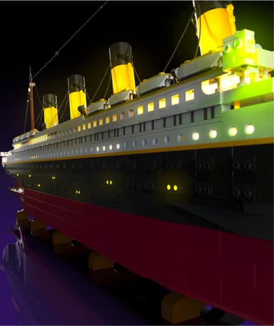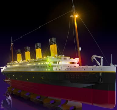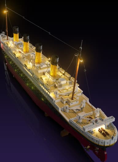 Visa upp storheten hos den största Titanic som någonsin byggts med Light My Bricks™-byggsatsen, med 53 varma lysdioder och smala kablar med vändbara kontakter för enkel installation, guidad av detaljerade 3D-instruktioner.Läs mer om produkten