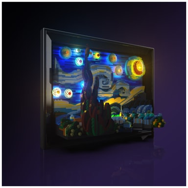 Light My Bricks™-sats förhöjer din LEGO® Vincent van Gogh - The Starry Night med 15 specialdesignade Astro-lampor som ger liv åt Van Goghs ikoniska penseldrag och färger.Läs mer om produkten