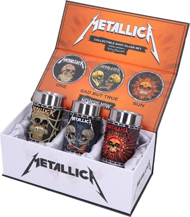 Nemesis Now Metallica shotglas passar fint i nördsamlingen. Med en löstagbara insatsen i rostfritt stål förblir de handmålade hartsglasen lika snygg som när du fick den.Läs mer om produkten