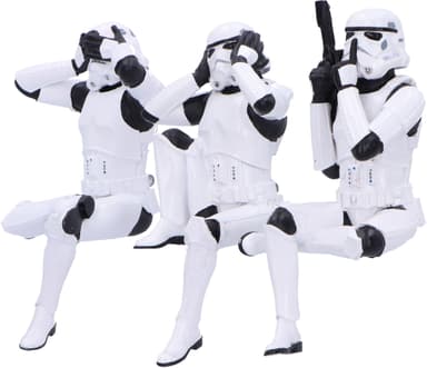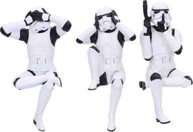 Nemesis Now Three Wise Sitting actionfigur visar Stormtrooper-figurer på ett lekfullt sätt, som efterliknar den klassiska "See no evil, hear no evil, speak no evil"-tropen.Läs mer om produkten