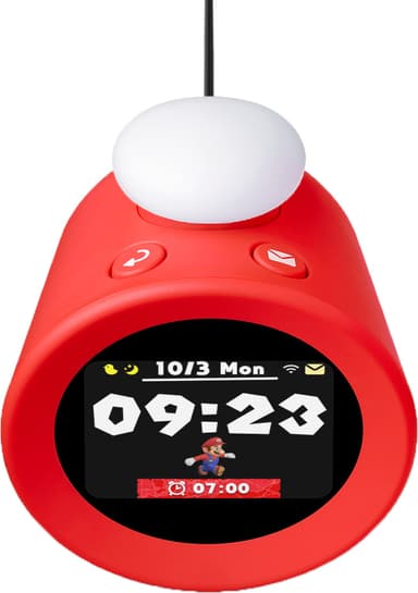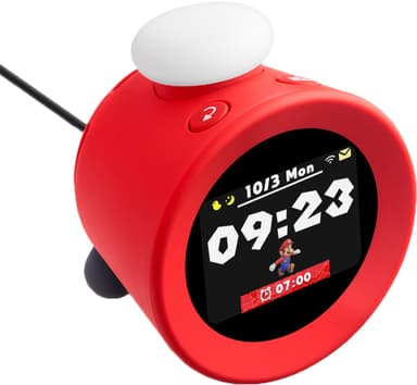 Skaffa Nintendo väckarklocka så du kan snooza eller stoppa ditt morgonalarm med en handgest eller bara stiga gå upp. Se tid och datum som visas på framsidan av alarmet tillsammans med 35 olika teman från 5 Nintendo-spel.Läs mer om produkten