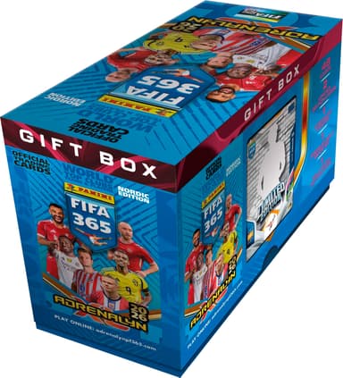 Denna Asmodee FIFA 365 AdrenXL 2026 presentbox innehåller 8 boosterpaket, 2 Limited Edition-kort, 1 XXL Limited Edition-kort, en Premium Gold booster och en checklistaffisch. En perfekt present för fotbollsfans och kortsamlare.Läs mer om produkten