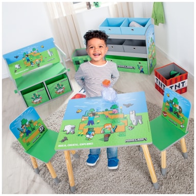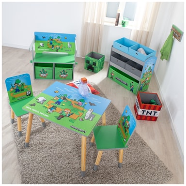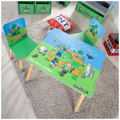 Phoenix Minecraft bord- och stolset inspirerar kreativitet hos unga äventyrare, med två stabila stolar och ett rymligt bord, utformat med teman från det klassiska tv-spelet Minecraft. Perfekt möbel för barnens lekrum eller sovrum!Läs mer om produkten