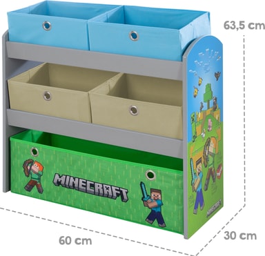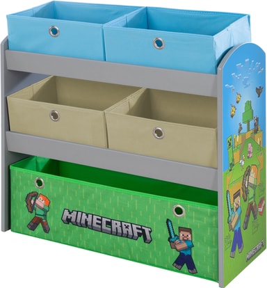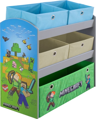 Phoenix Minecraft-spelhylla förvandlar ditt barns rum till ett pixlat äventyr med sin autentiska design, hållbara MDF-konstruktion och praktisk förvaring med fyra små och en stor tygbox för leksaker och böcker.Läs mer om produkten