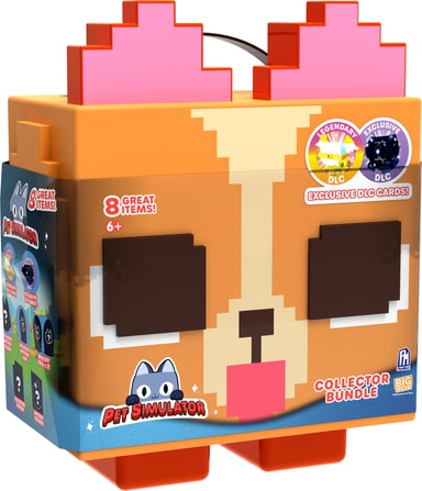 Play Pixel Corgi leksaksset innehåller en liten, pixlad plyschleksak av en katt och en mindre plyschleksak av en brud. Det finns också ett kort med Pet Simulator-logotypen och bilder på olika husdjur från spelet.Läs mer om produkten